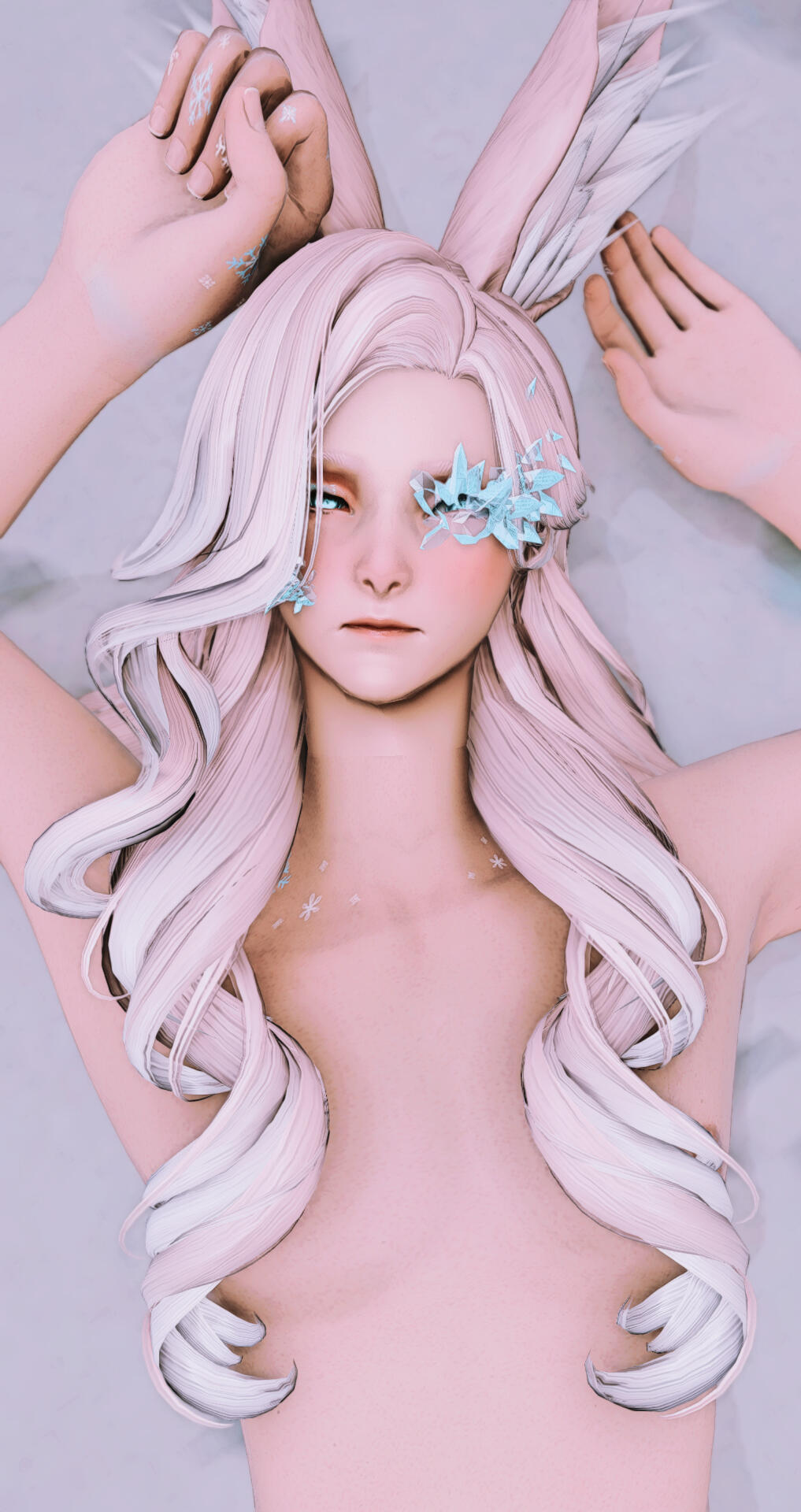 Upon what he thought would be the end, settling into a small apartment with a few jobs at different places and his recorded music doing rather well, something else began to come to the surface.It started with freezing liquids in his near vicinity whenever his emotions got the better of him and escalated so far as manifesting large chunks of ice in a range of specific shapes. The cold began effecting his own body the more he tried to contain it. Ice would form across his fingers, leaving them numb, his body temperature plumiting that would leave him with a great level of fatigue.Upon fearing for himself and the people he cared about, he began seeking help while researching different areas of magic to find a solution to his icy conditions. It was only when he found help within a spirit that his true nature came to light. That he was born of viera and spirit. A bridge between two realms.
